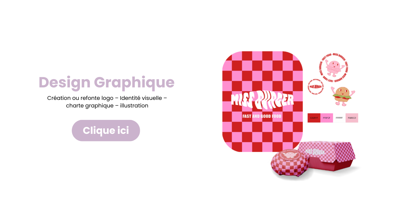 Félicitations pour ce beau projet ! Je suis là pour vous aider à poser les bases d’une communication visuelle professionnelle et impactante. Que ce soit pour la création de votre logo, de votre identité visuelle, de supports print ou d’une stratégie digitale, je propose des services sur mesure pensés pour valoriser votre entreprise et vous démarquer. Ensemble, donnons vie à une image qui reflète votre passion et attire vos futurs clients.
